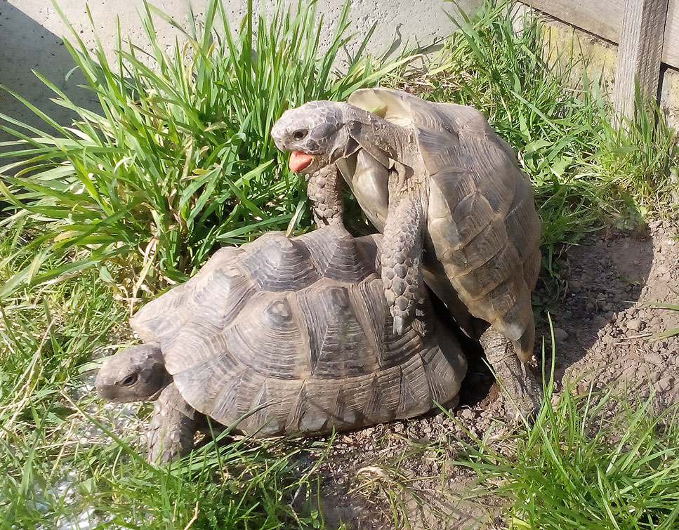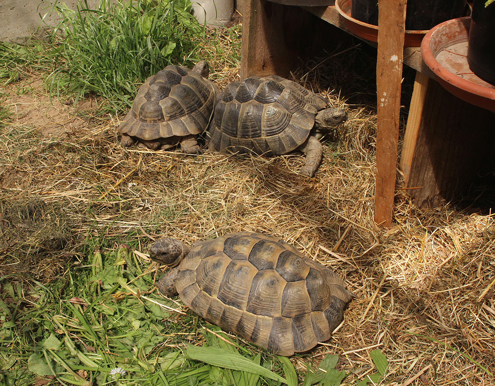 Unsere drei erwachsenen maurischen Landschildkröten.