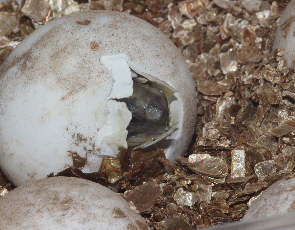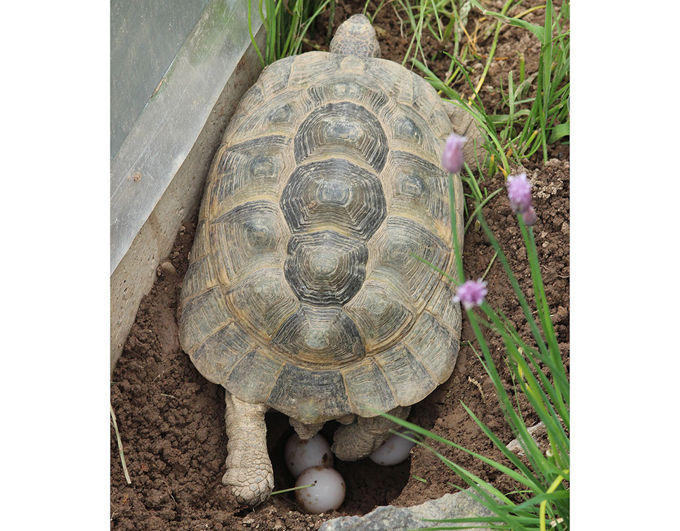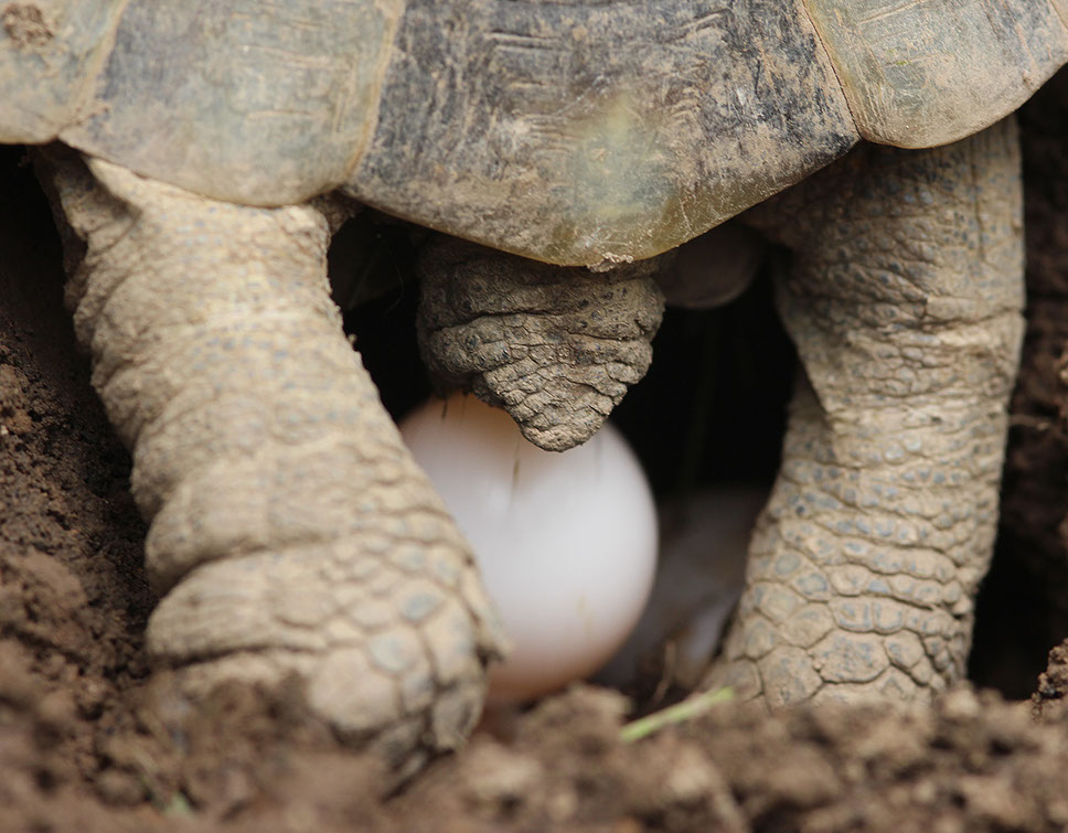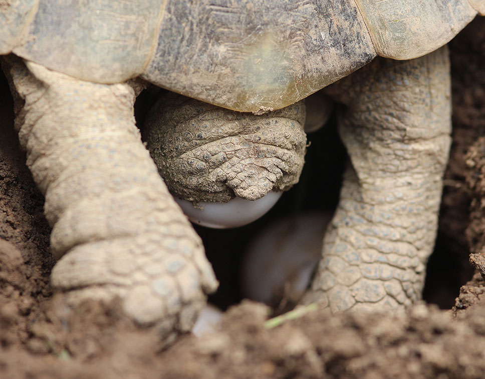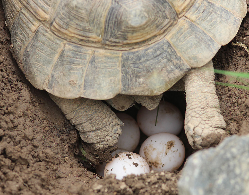 Die Eiablage strengt die Tiere an. Wenn sie die Grube wieder mit Erde gefüllt haben, ist die Eiablagestelle kaum noch zu erkennen.